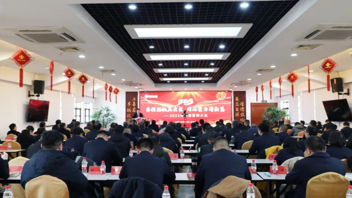 玉兔报春,开工大吉。1月29日正月初八,EMC易倍集团在行政楼三楼召开了2023年新春誓师大会,会议采用现场会议和钉钉直播形式,集团领导及各部门经理以上干部参加主会场会议。会议由副总经理秦林主持。