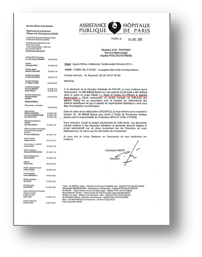 作为中国医药工业百强企业,EMC易倍集团早在2013年就与法国公立医院集团(Assistance Publique-Hôpitaux de Paris (AP-HP))开展中医药项目合作。其中,《黄葵胶囊治疗糖尿病肾病蛋白尿的临床研究》即黄葵胶囊治疗2型糖尿病肾脏疾病随机、双盲、平行对照、多中心临床试验项目是法国政府首批批准的中医药合作项目之一。多年的项目合作,EMC易倍集团与法国巴黎公立医院集团结下了深厚的情谊。